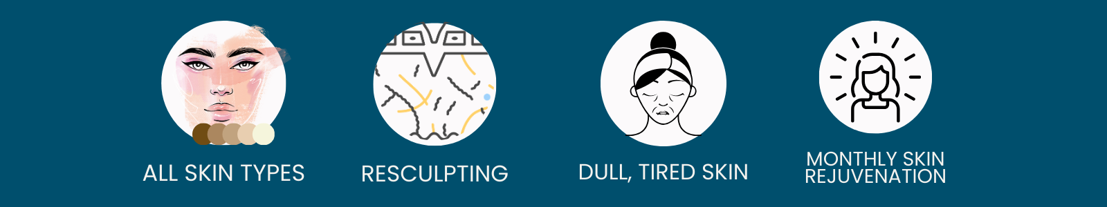 This treatment focuses on rejuvenating and contouring to help address loss of volume and elasticity. Using a powerful combination of age-defying peptides and LED therapy, it stimulates collagen production, hydrates the skin, and leaves your complexion looking radiant and fresh.